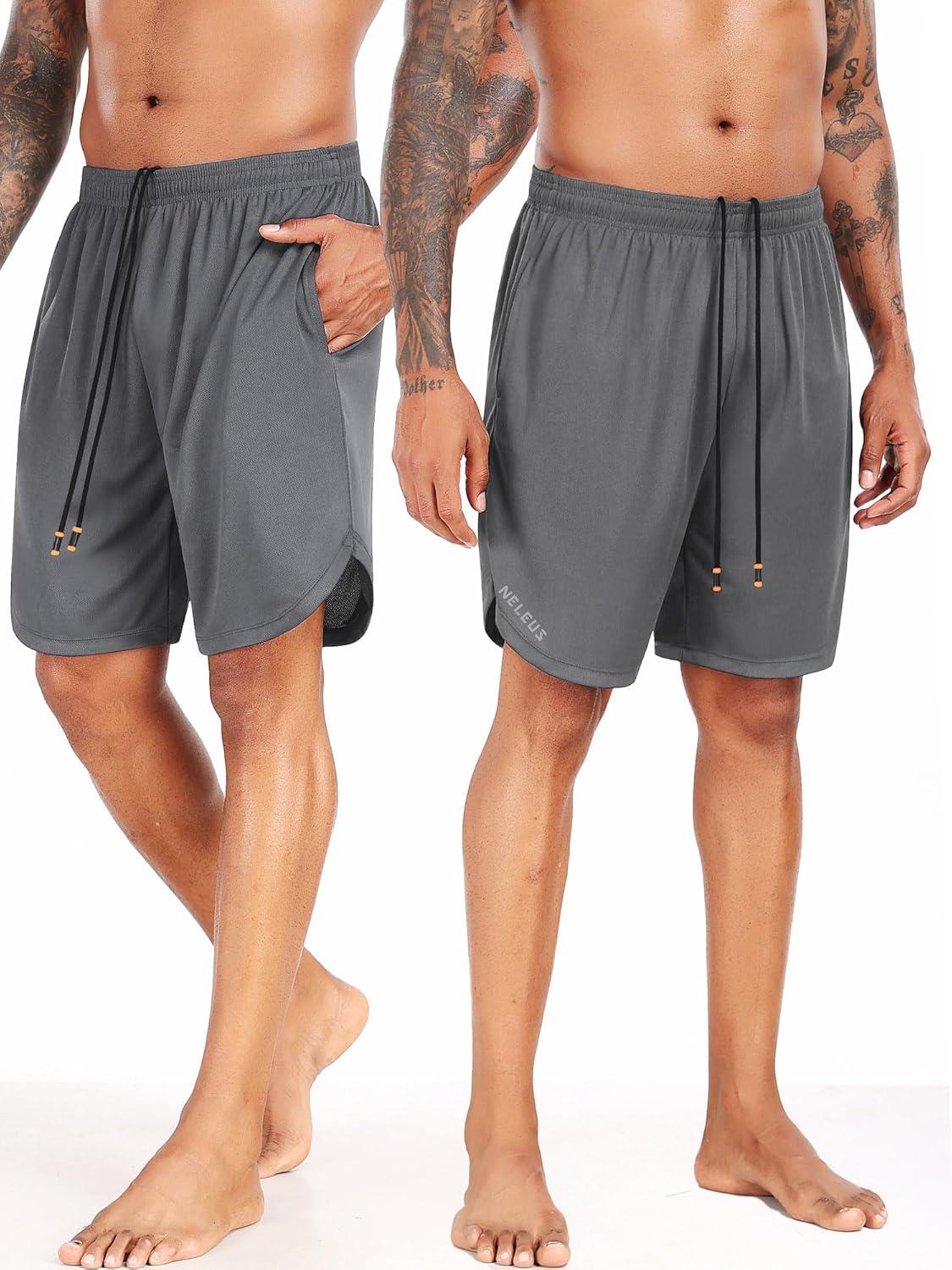 NELEUS 2 in 1 Athletic Shorts for Men 9″ Dry Fit Workout Running Shorts with Pockets(6150 Grey 1 Pack)