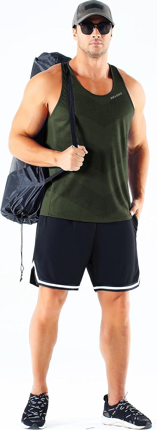 NELEUS Men’s 3 Pack Dry Fit Y-Back Muscle Tank Top(5161 Black/Black/Black)