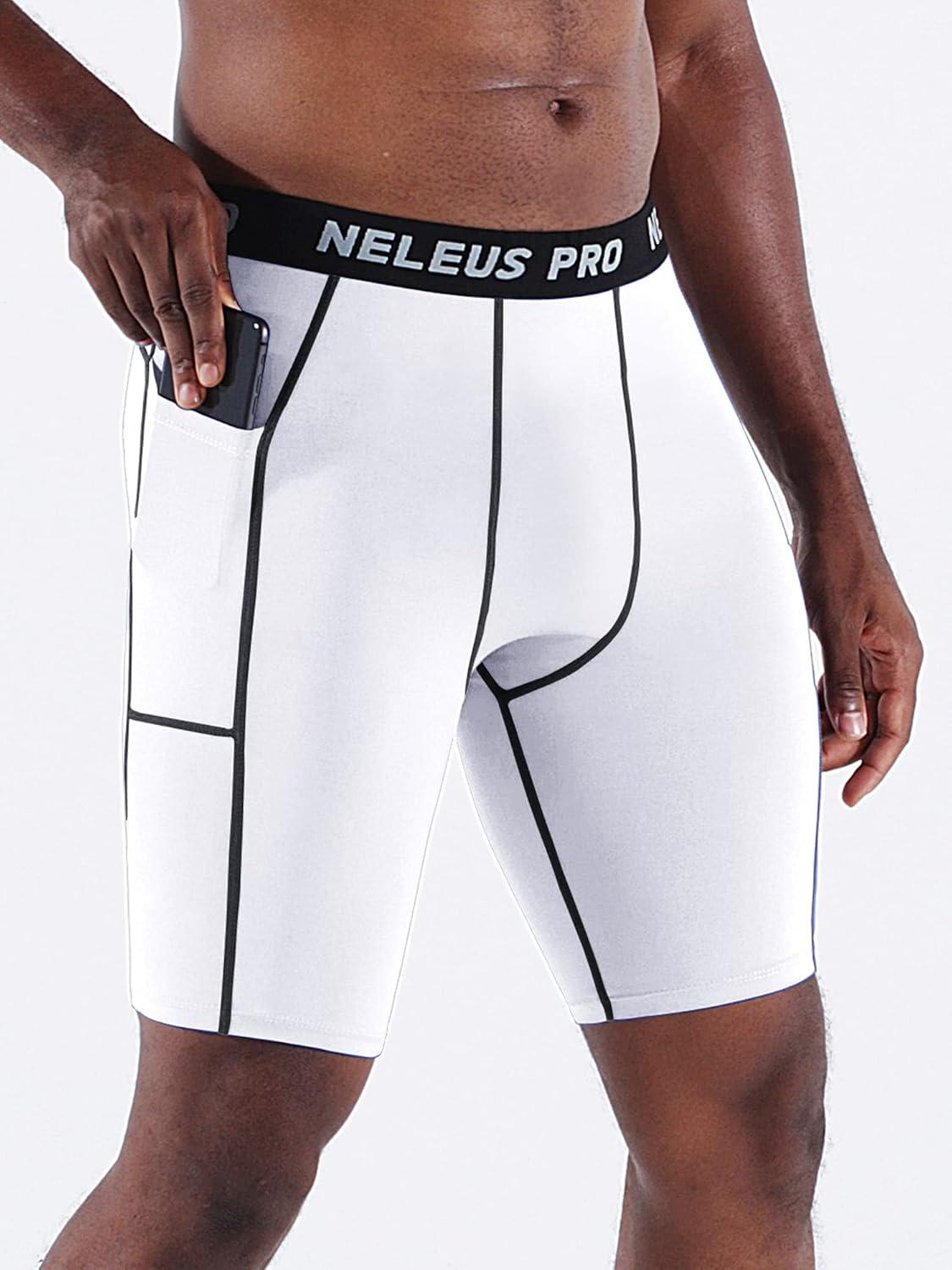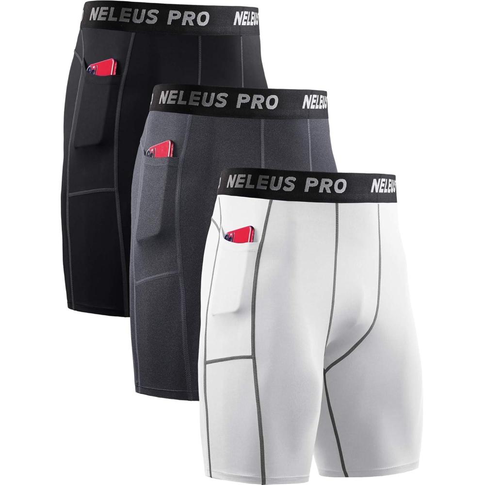 NELEUS Men’s 3 Pack Running Compression Shorts with Pockets(6081 Black/Grey/White 3 Pack)