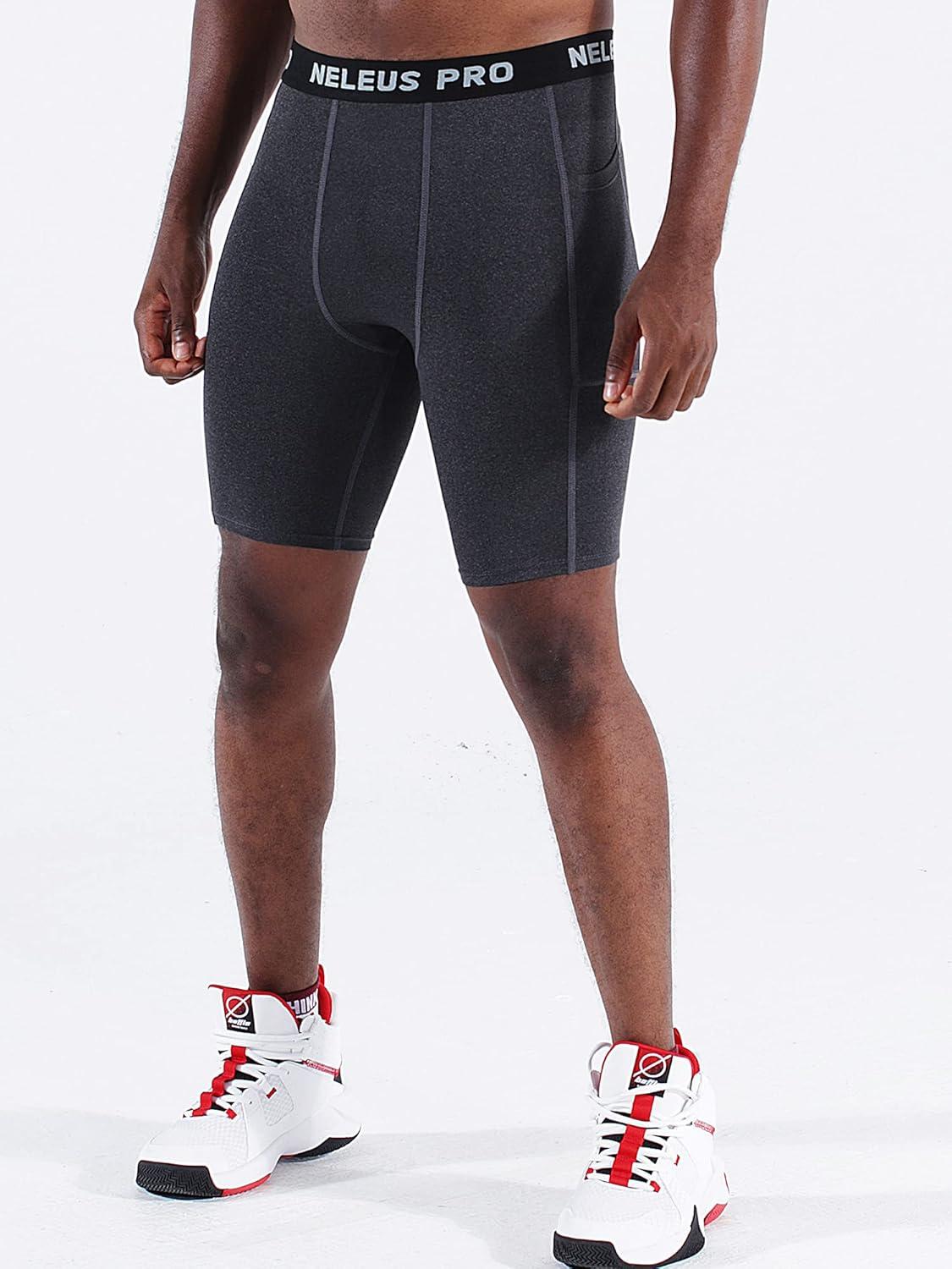 NELEUS Men’s 3 Pack Running Compression Shorts with Pockets(6081 Black/Grey/Red 3 Pack)