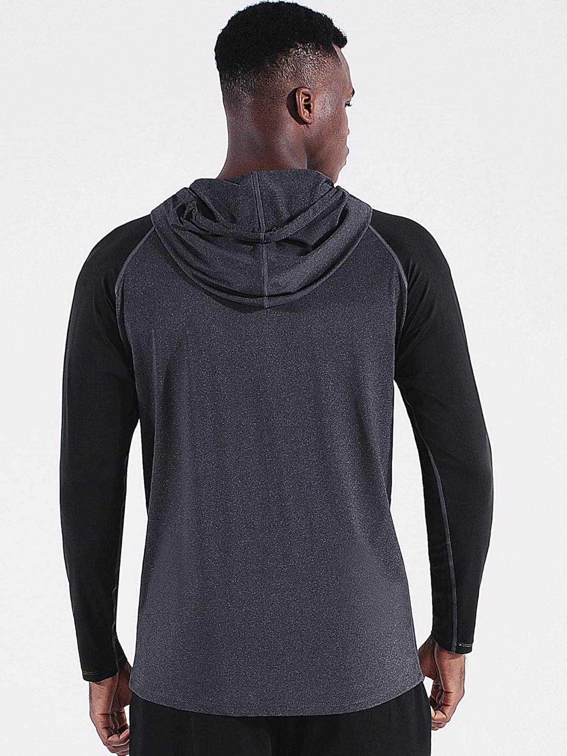 NELEUS Men’s Dry Fit Athletic Shirt Workout Running Long Sleeve Shirts with Hoods((Upf 50+) Black/Grey 2 Pack)