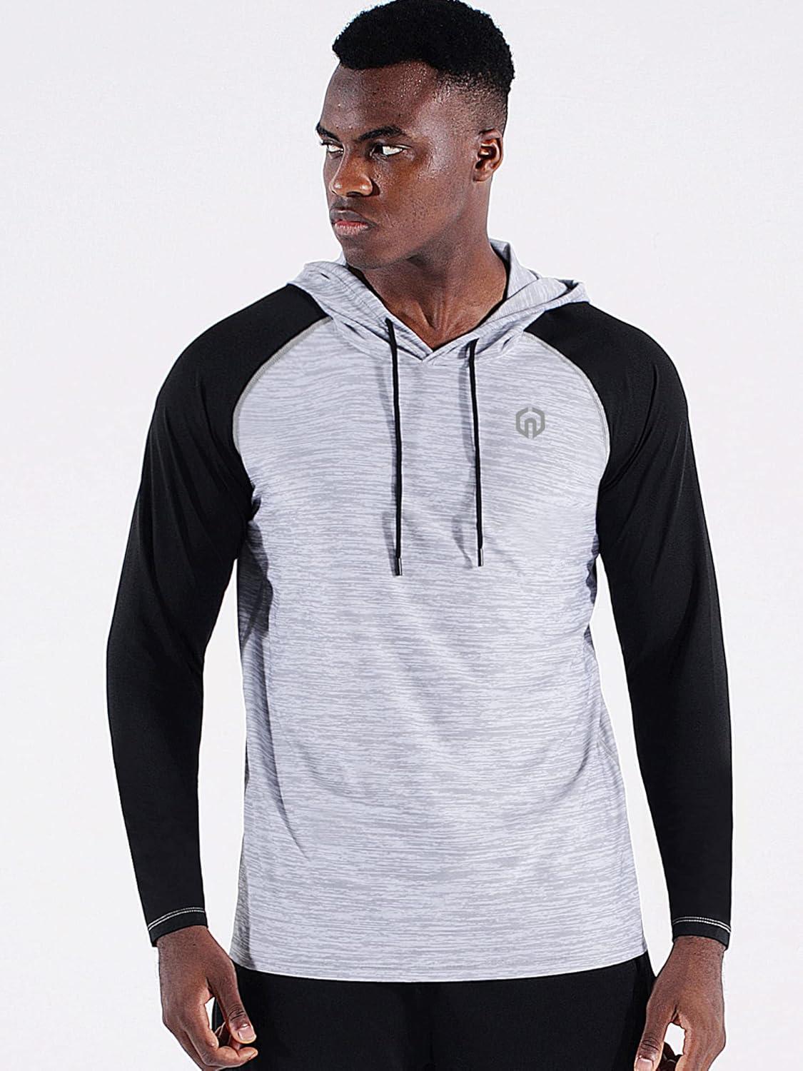 imageNELEUS Mens Dry Fit Athletic Shirt Workout Running Long Sleeve Shirts with Hoods5102 Dark GreyRedLight Grey 3 Pack