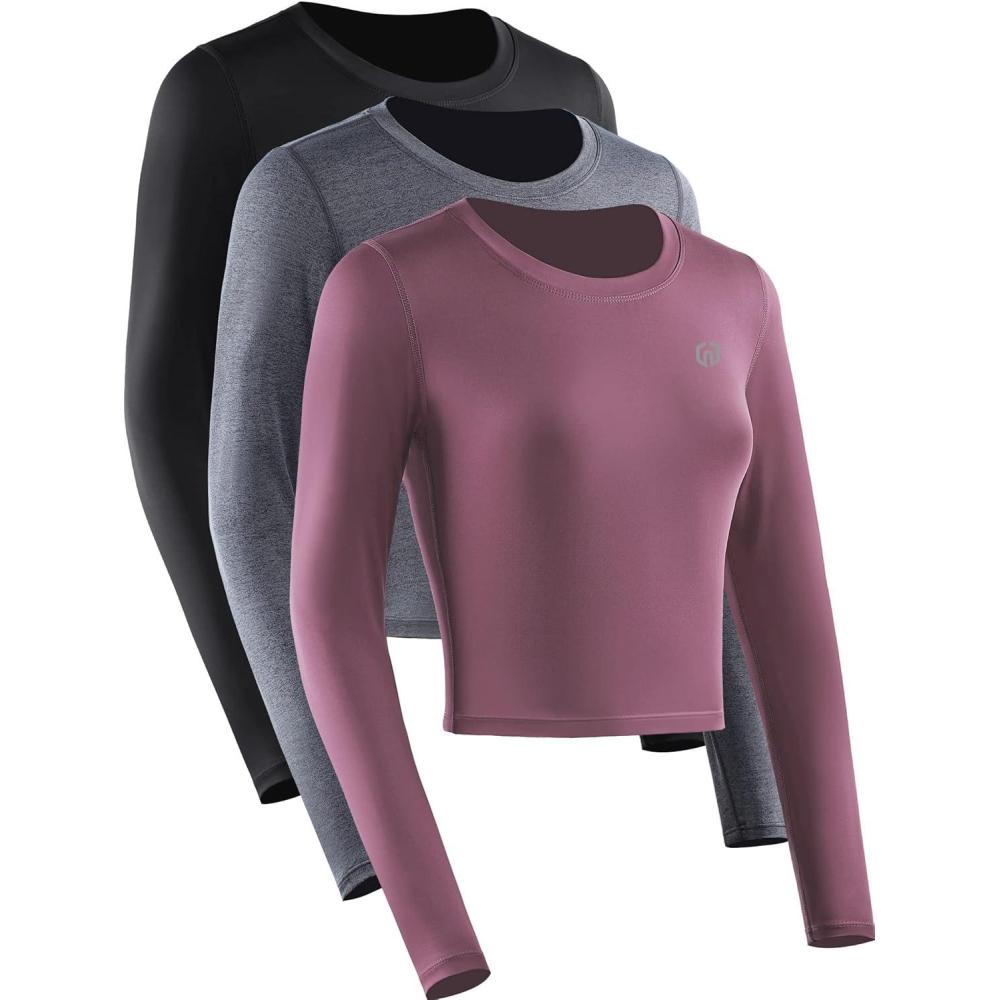 NELEUS Women’s 3 Pack Compression Workout Athletic Shirt(Black/Grey/Rose Red Long Sleeve)